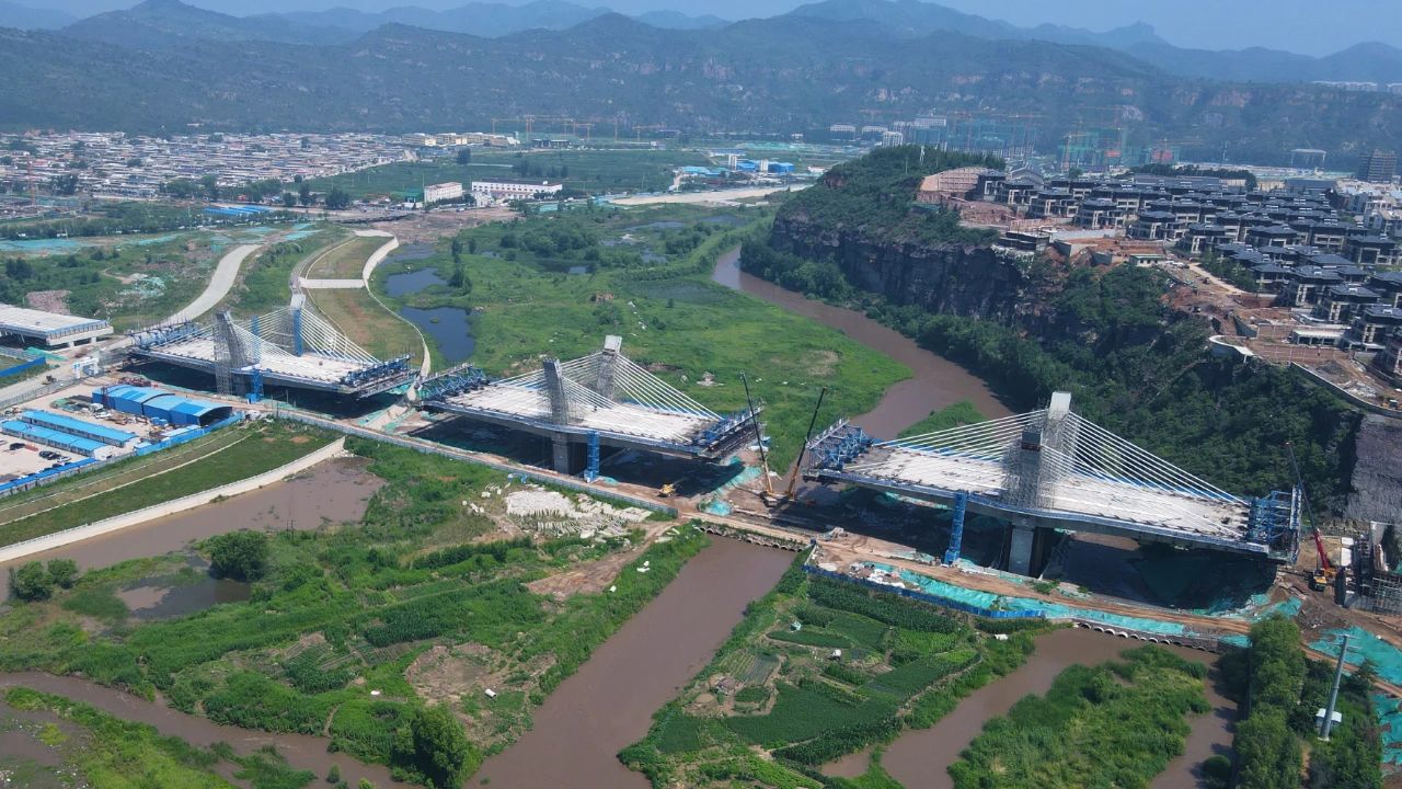 承德閆營子大橋東西向橫跨灤河,西接丹霞路,東接大劉線,位于進(jìn)出承德的門戶位置。項目工程包括主橋、引橋及兩側(cè)引道三部分總長933m。其中主橋為三塔四跨雙索面預(yù)應(yīng)力混凝土矮塔斜拉橋,跨徑長度460m,全寬37.5m。