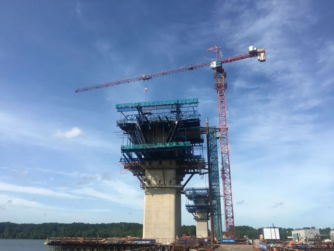 大橋主橋橋面寬度為22.16m,中跨合攏段長度3m,采用掛籃懸臂法施工,項目建成后,將極大縮短Tanjung Bin至Tanjung Pelepas之間材料及物資運輸?shù)臅r間,對推動馬來西亞Pontian、Kukup以及周邊地區(qū)發(fā)展將起到重要作用。