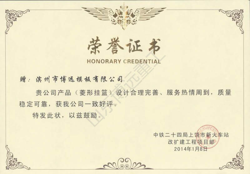 濟高高速小清河異步掛籃榮譽證書